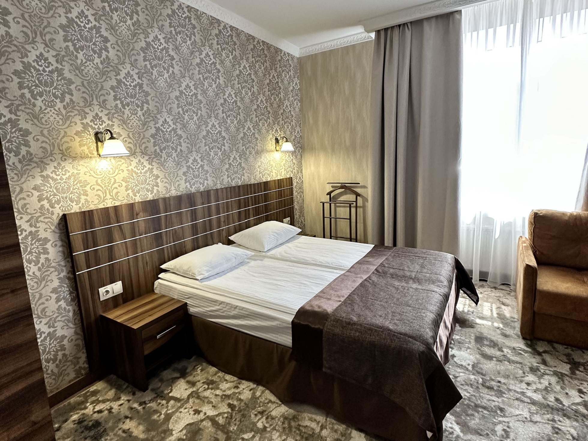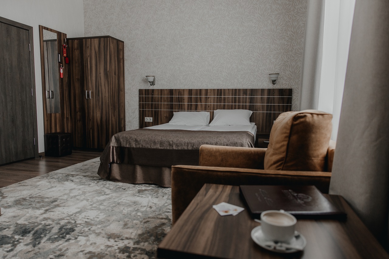Уютные и комфортные номера. Кресло с журнальным столиком создают удобное пространство для работы и досуга. Площадь номеров 25-28 м2