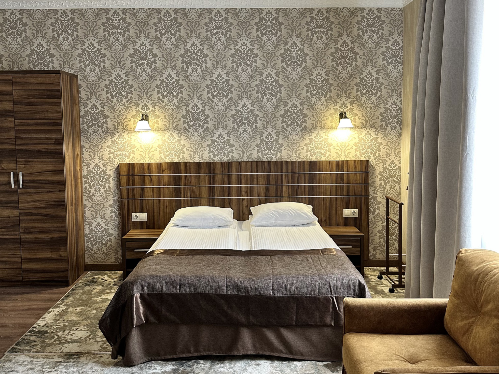 Одна двуспальная кровать с системой комфортного сна, диван-кровать или кресло-кровать.
