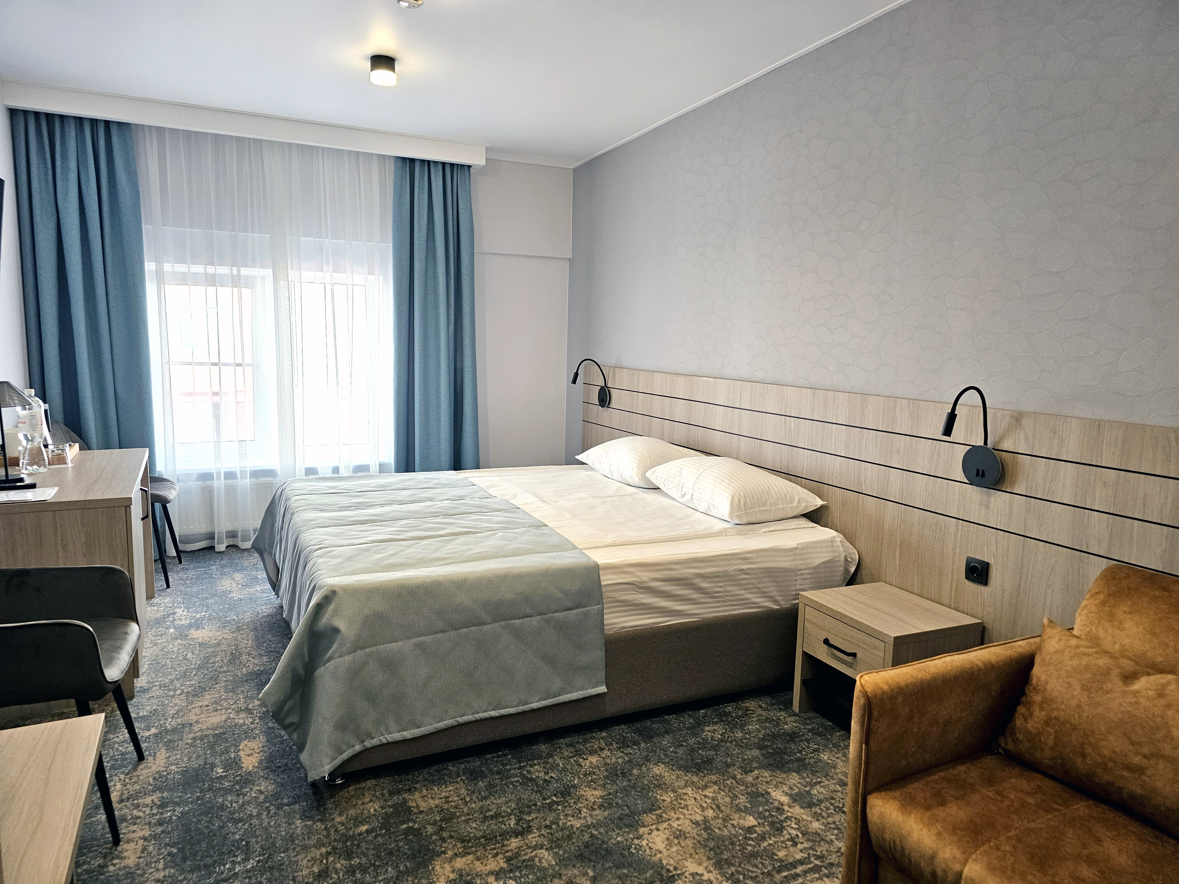 Улучшенный двухместный номер стандарт. Кресло с журнальным столиком создают удобное пространство для работы и досуга. Площадь номеров 25-28 м2
