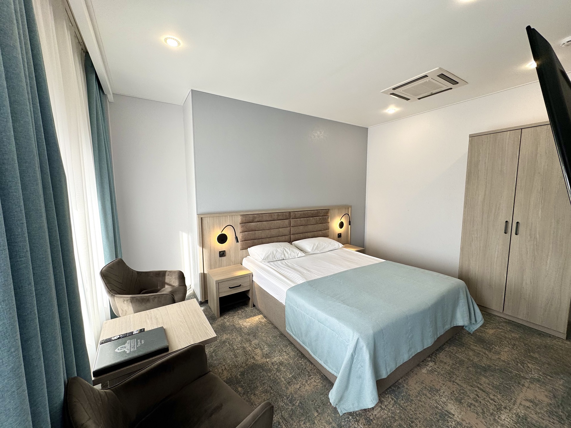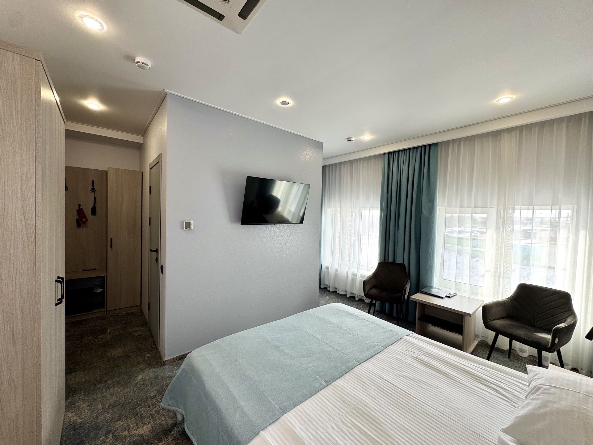 Стандартные номера обеспечат Гостей комфортом и уютом. Оборудованы элегантной качественной мебелью. Уютные номера гарантируют Гостям спокойствие и отдых. Площадь номеров 19 м2